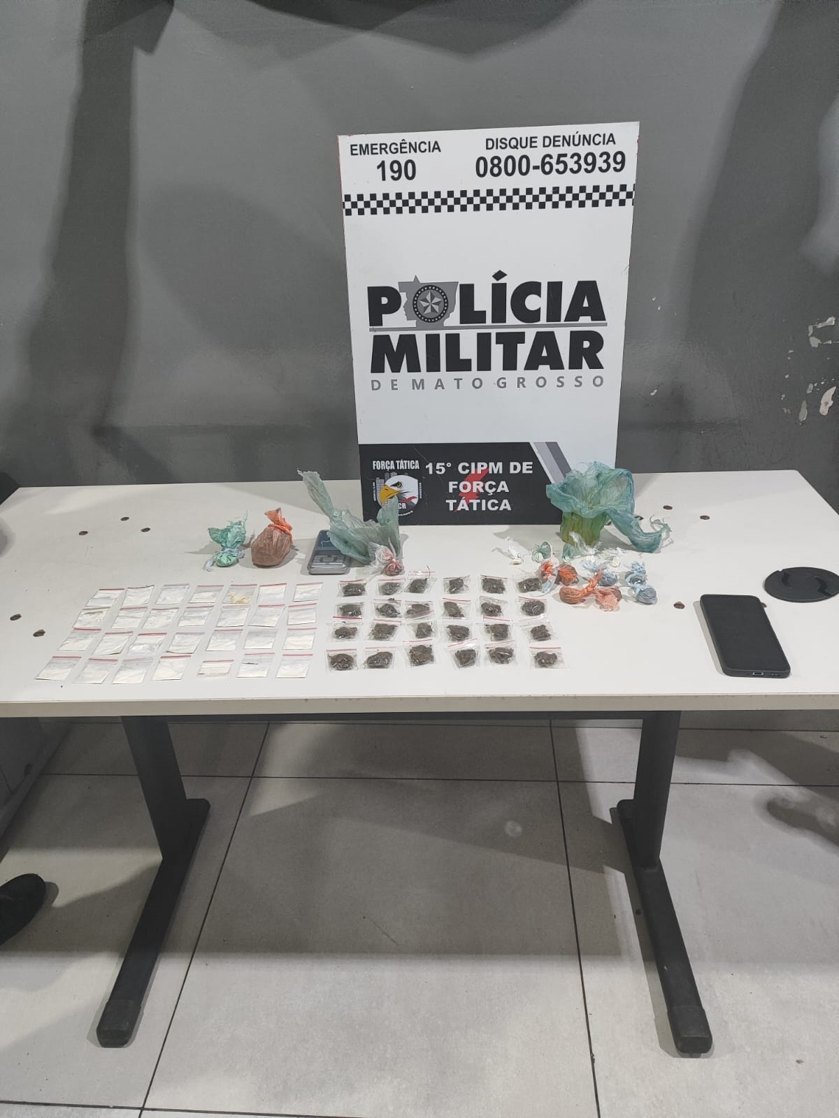 A equipe da Força Tática do 2º Comando Regional, por meio da viatura FT 90, desarticulou um ponto de tráfico de drogas na tarde desta quarta-feira (11), por volta das 15h, no bairro Parque do Lago, em Várzea Grande. Dois suspeitos, de 22 e 20 anos, foram conduzidos à Central de Flagrantes.