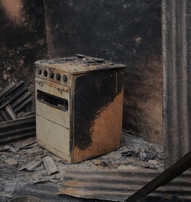Ao sair para verificar o que estava acontecendo, encontrou a casa completamente incendiada.