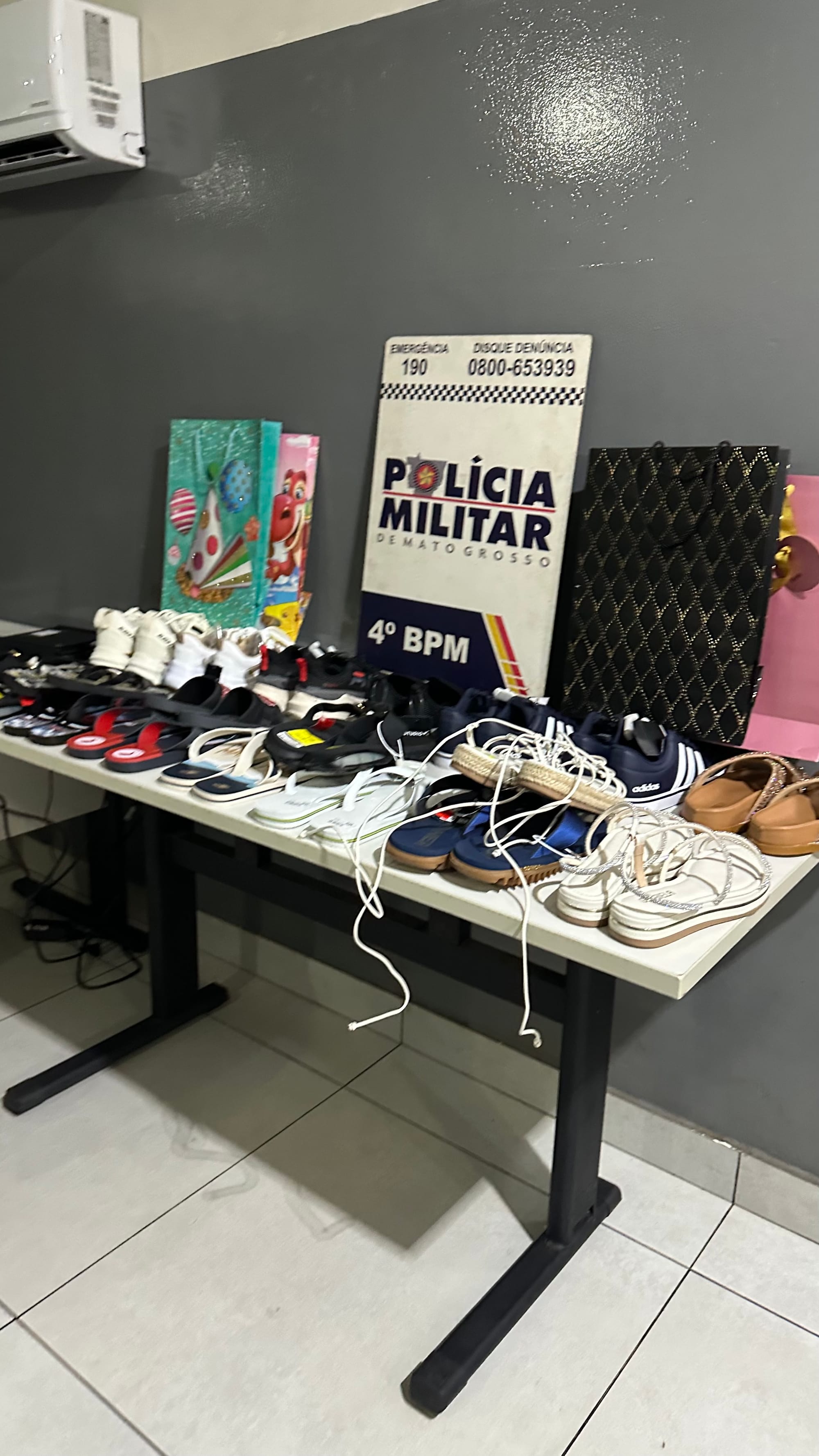 Ainda conforme o relato, a jovem teria entrado na loja acompanhada de outros três suspeitos, que conseguiram se evadir antes da chegada dos policiais. Durante a abordagem, os militares constataram que nas duas sacolas havia mais de 30 pares de calçados, entre tênis e outros modelos, todos sem comprovação de pagamento.