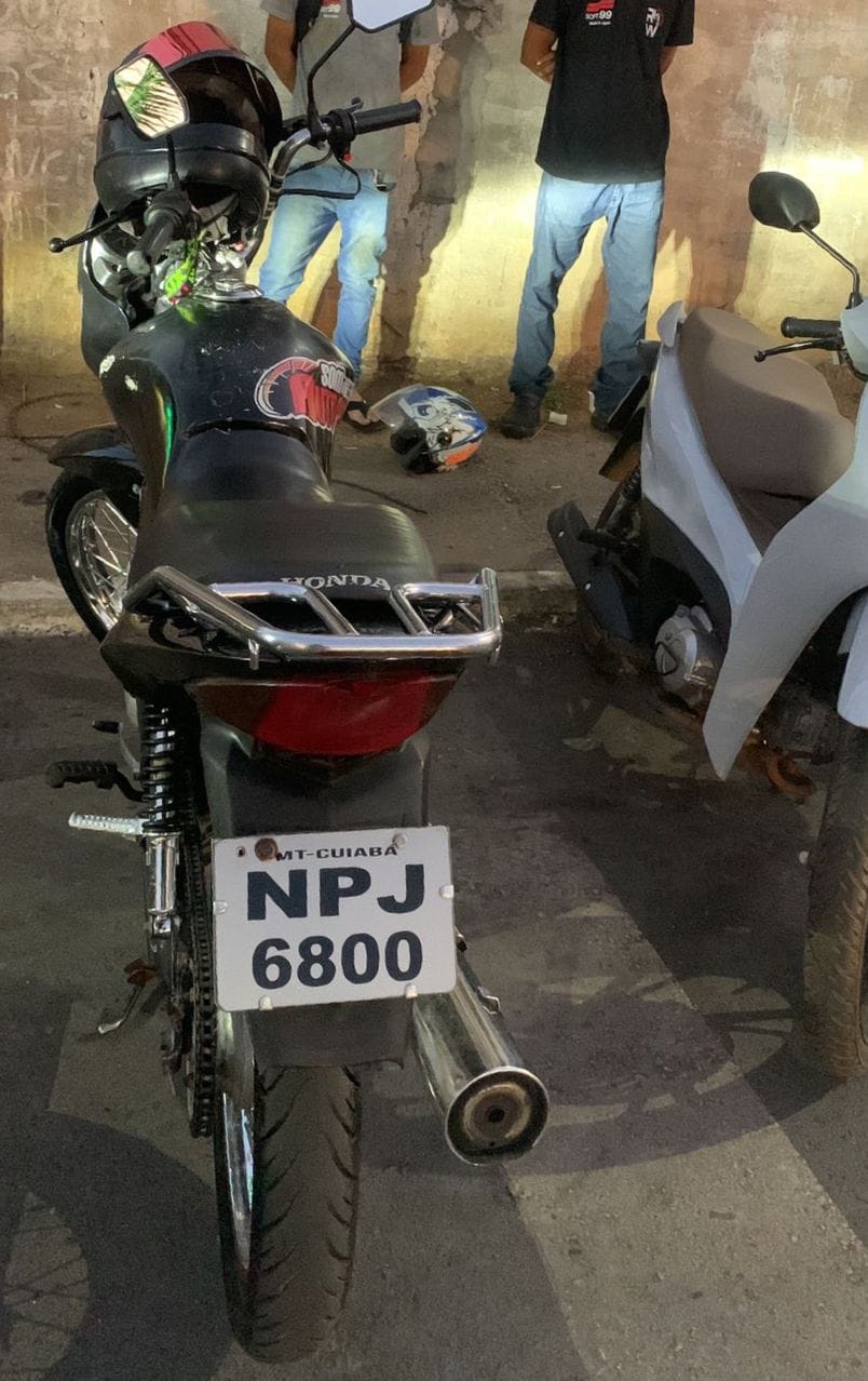 Motociclista é flagrado com placa artesanal perto de shopping em Várzea Grande e acaba na Central de Flagrantes