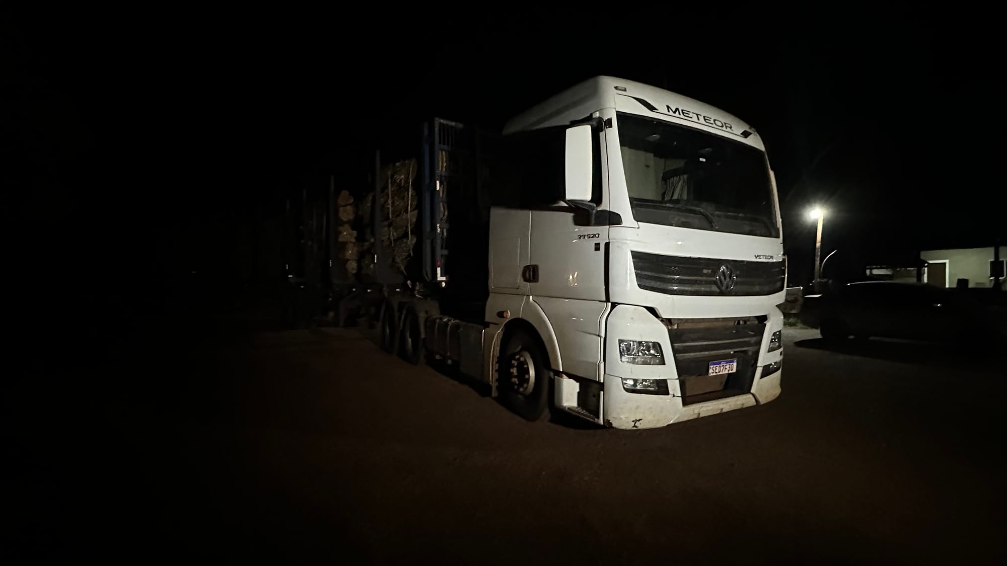 Acidente aconteceu na noite desta quarta-feira, quando uma carreta carregada com toras saía de um posto; vítima, um eletricista que retornava do trabalho, morreu na hora. Caso será investigado pela Deletran.