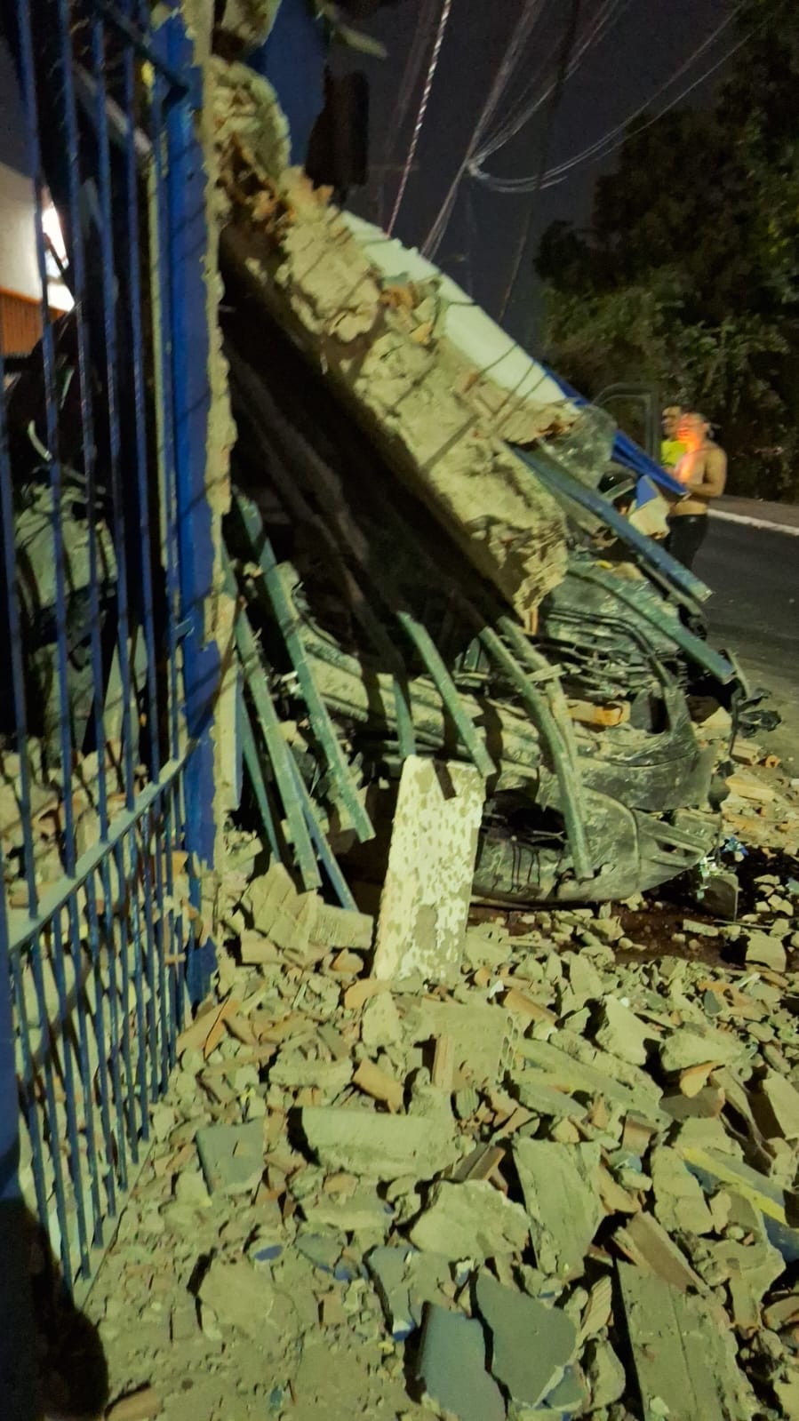 O impacto foi tão forte que deixou grandes danos na fachada da residência, assustando moradores e vizinhos que acordaram com o barulho.