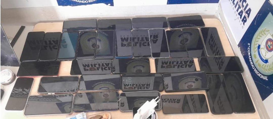 Durante a abordagem no imóvel, os militares encontraram outras quatro pessoas no local. Com o grupo, foram apreendidos 62 cartões bancários e diversos aparelhos celulares, que seriam utilizados na aplicação de golpes, principalmente em plataformas de vendas online.