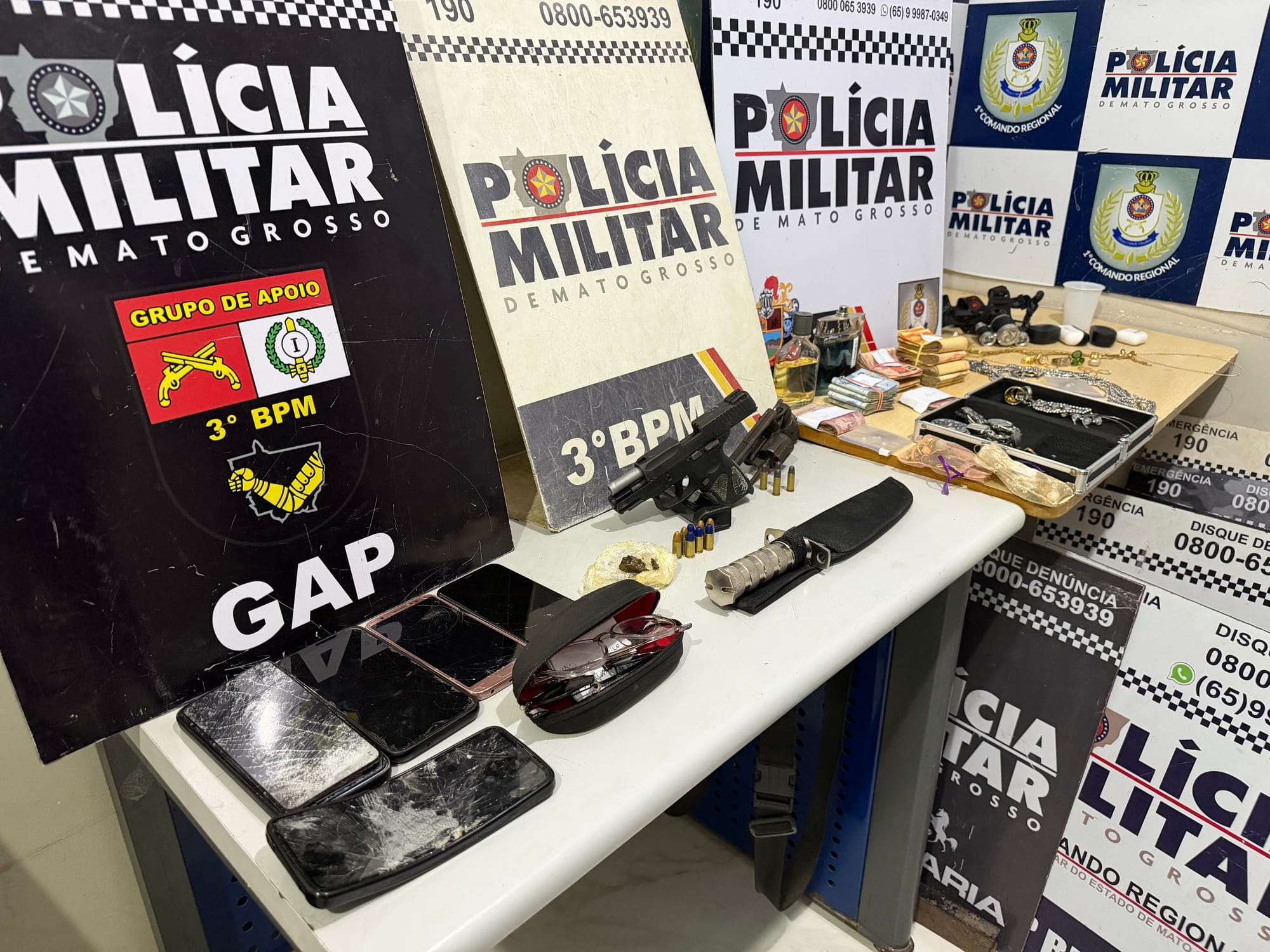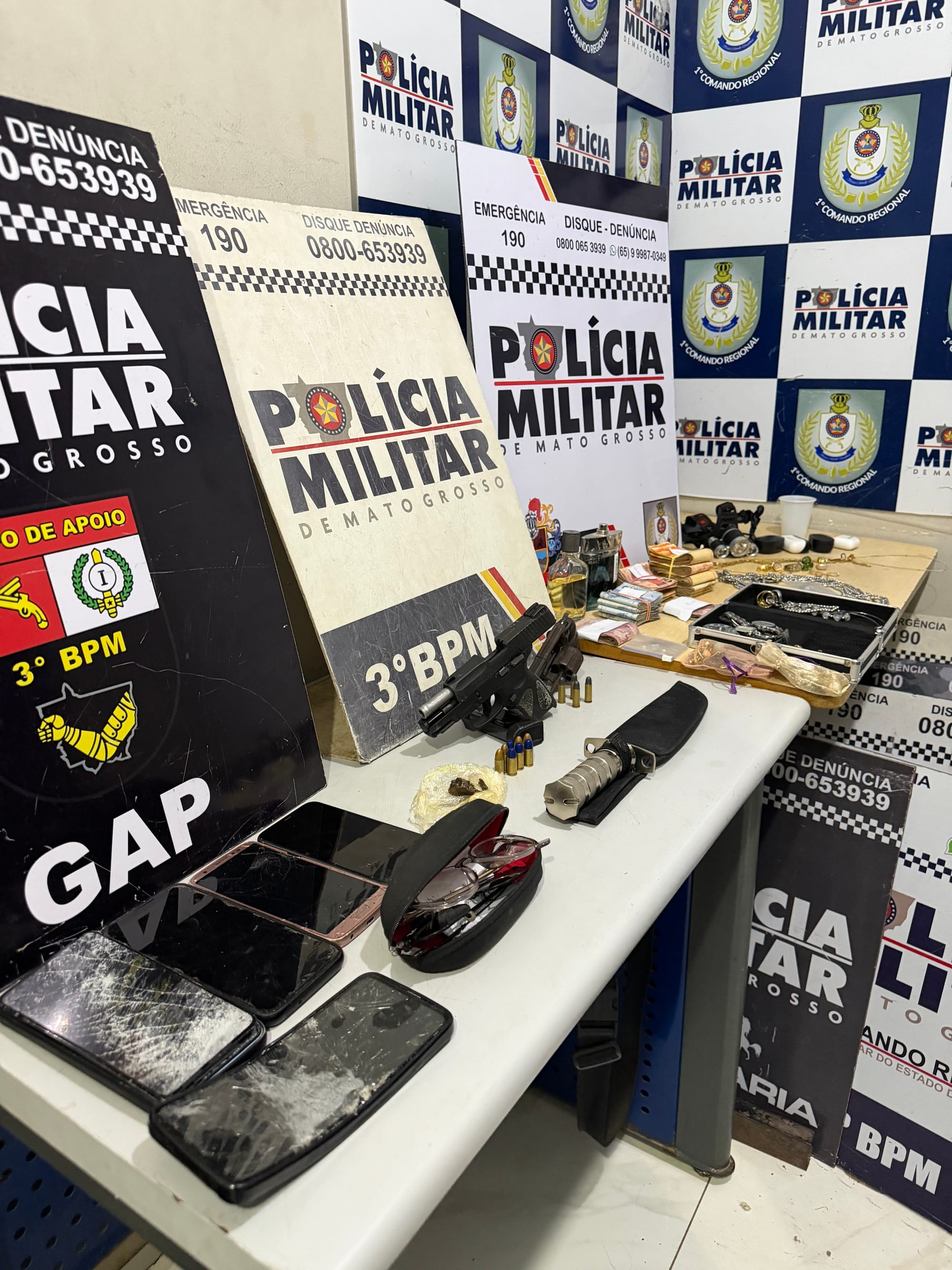 Neste momento na noite desta terça feira (10), a equipe do 24º Batalhão da Polícia Militar, sob o comando da Tenente-Coronel Athaysis, acaba de prender seis suspeitos que mantinham vítimas reféns desde por volta das 17h no bairro Santa Cluz 2, em Cuiabá.